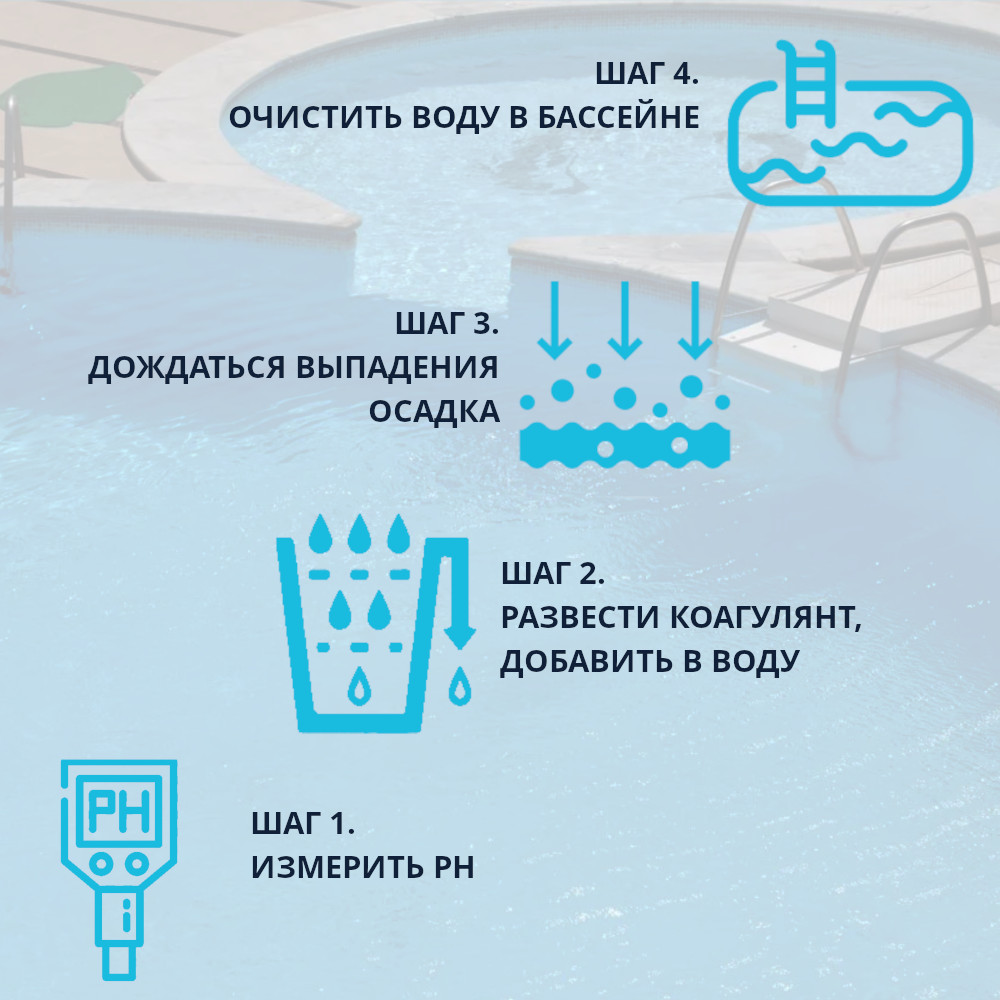 Правильное применение коагулянта – залог его эффективности. Ниже представлена инструкция, как использовать коагулянт для бассейна шаг за шагом: